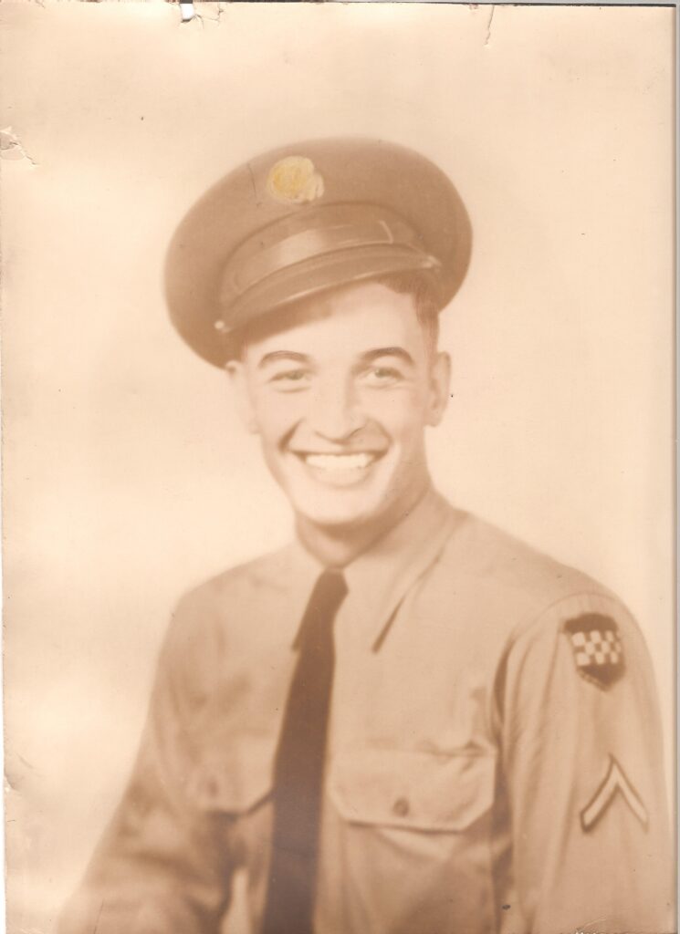 PFC. James C. Lyke, a member of the 394th Infantry Regiment having served in K Company until March 9th, 1944, when he and 12 other men were reassigned to M Company until his discharge at the end of the war.