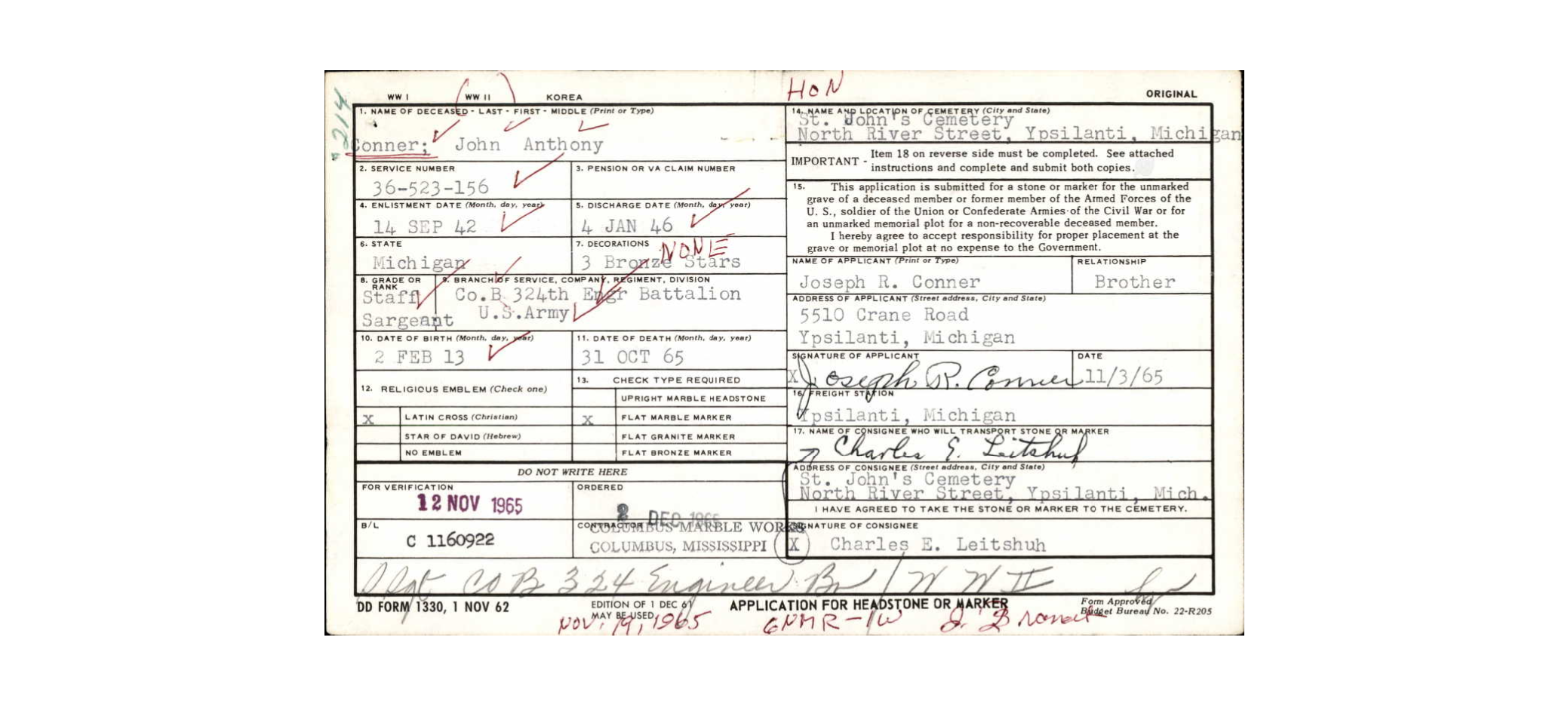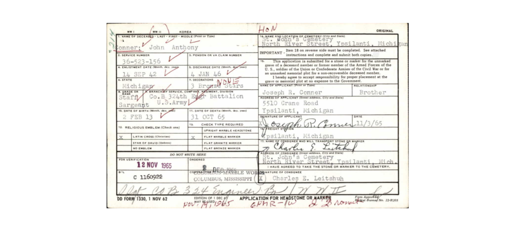 S/Sgt John Anthony Conner a member of the 324th Engineer Combat Regiment.